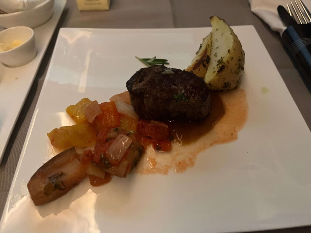 One unique feature: a chef takes your order after take-off for a full à la carte dining experience.
