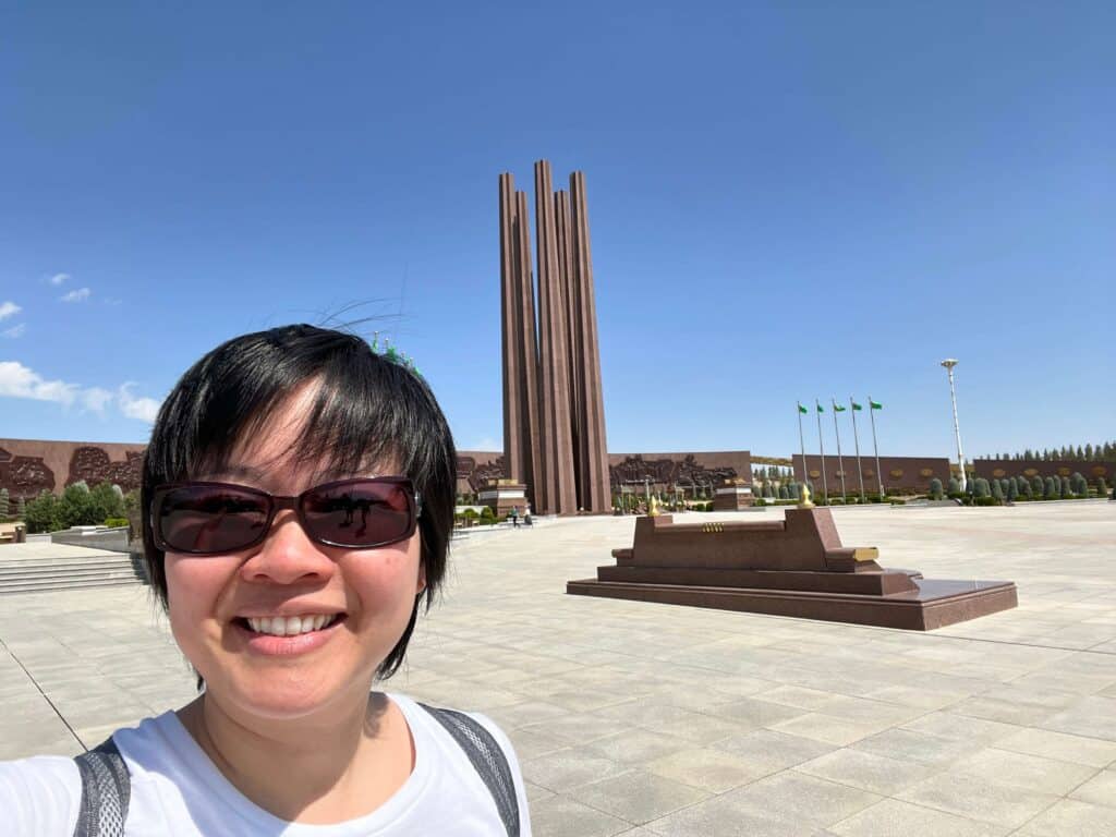 We started the day with a three-hour walking tour of Ashgabat led by our guide, Alex, under the relentless 100°F sun.