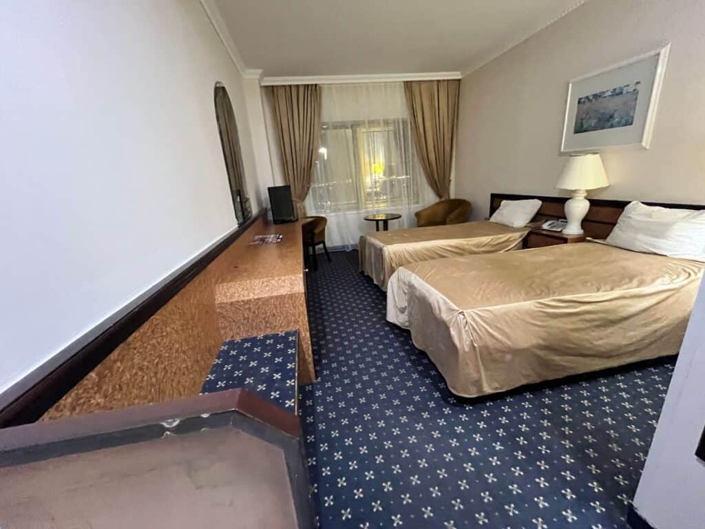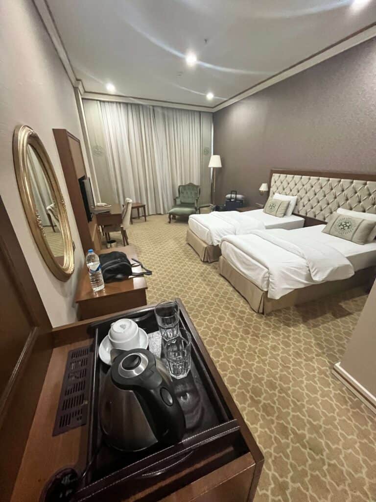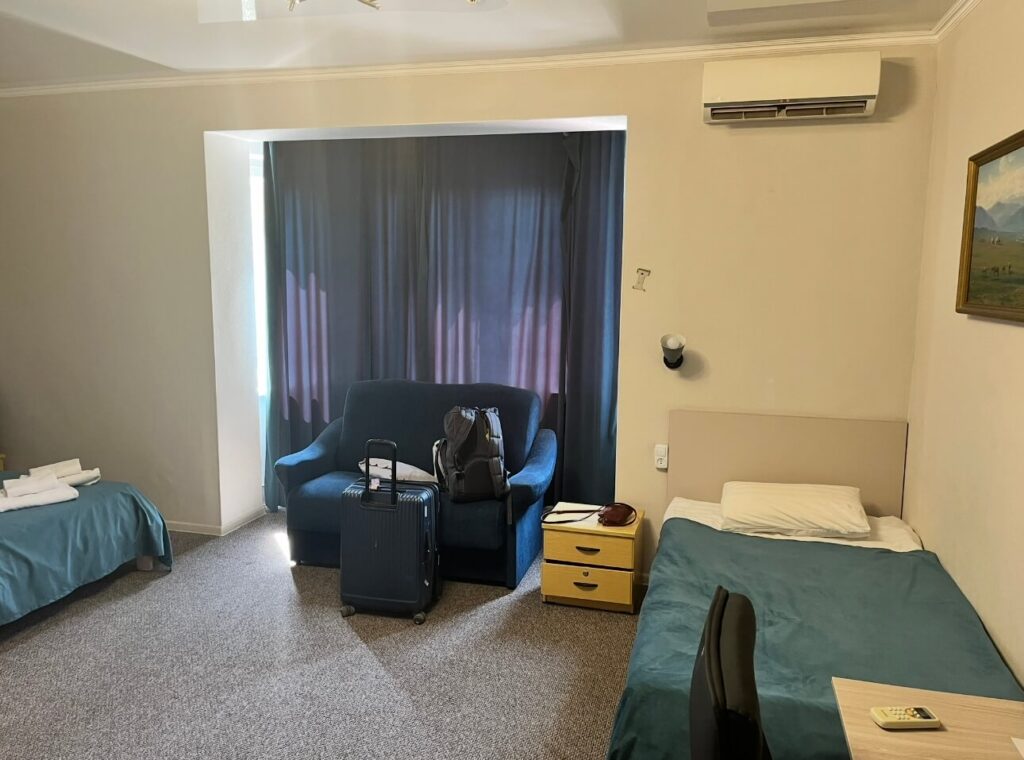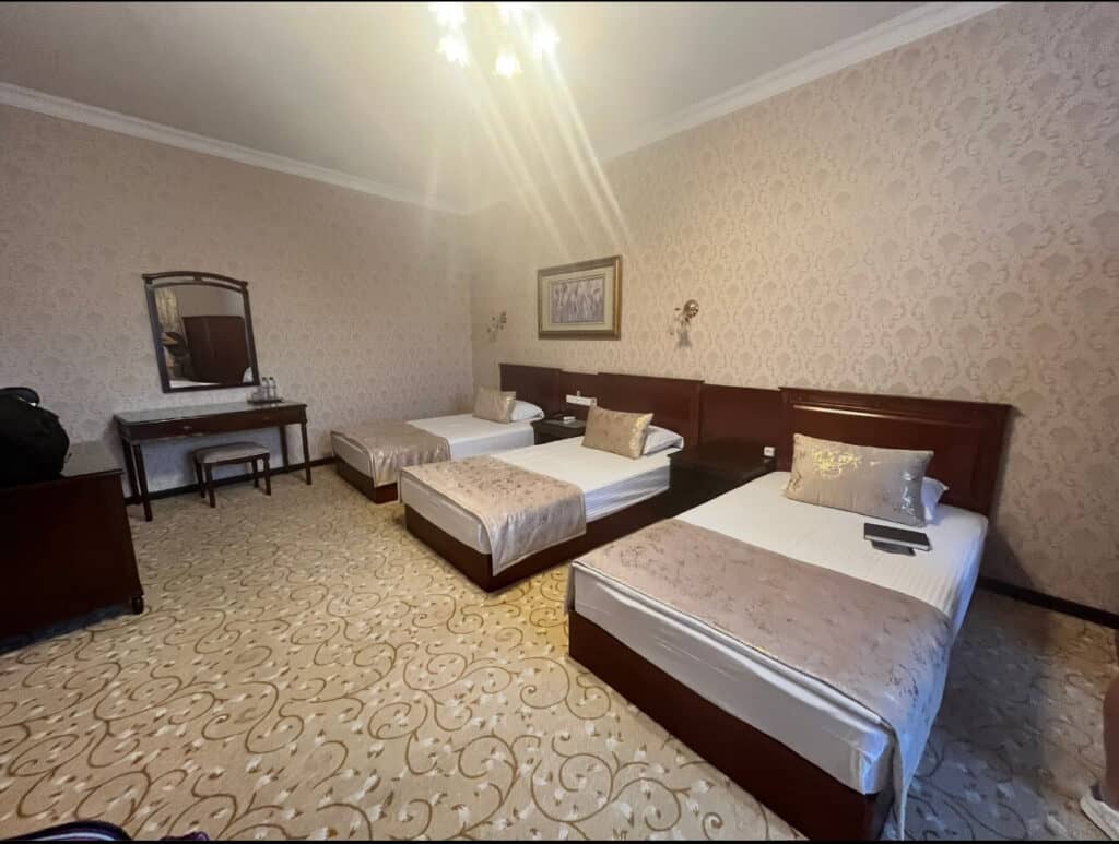 This ended up being our favorite hotel in all the Five Stans—spacious rooms, a warm welcome, and yes, actual coffee in the room (a big deal on this trip!).