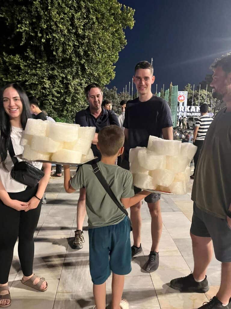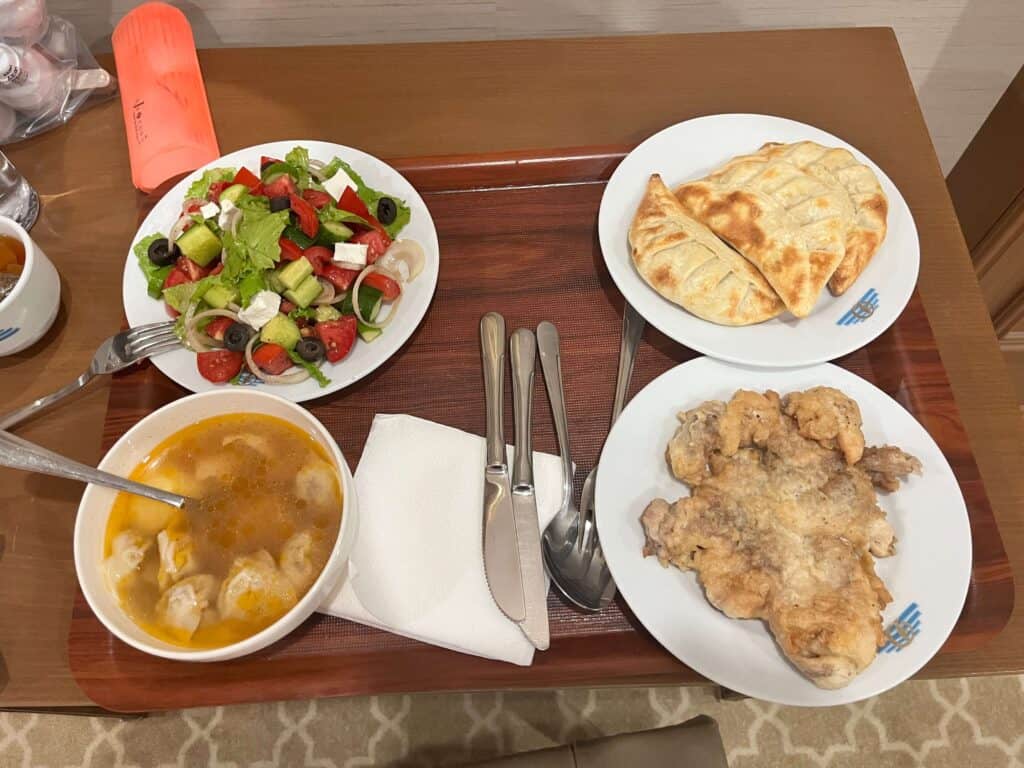 The total travel time, including airport layovers, was around 20 hours. We were even served a nice meal during the final 3.5-hour leg of the flight to Ashgabat.