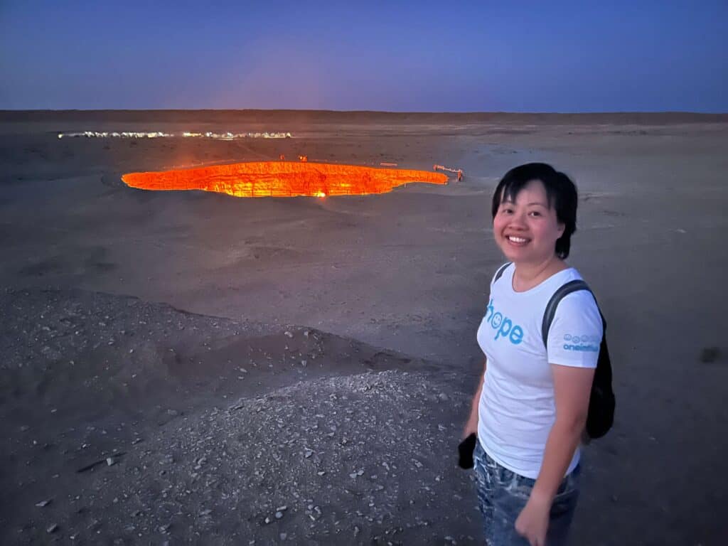 After lunch, We drove close to five hours on bumpy roads to the renowned Darvaza crater, where we spent the night in yurts.