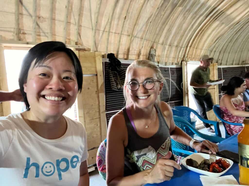 Thankfully, they had beds this time. The toilets were not bad, but there were no showers. We couldn’t sleep because it was so hot.